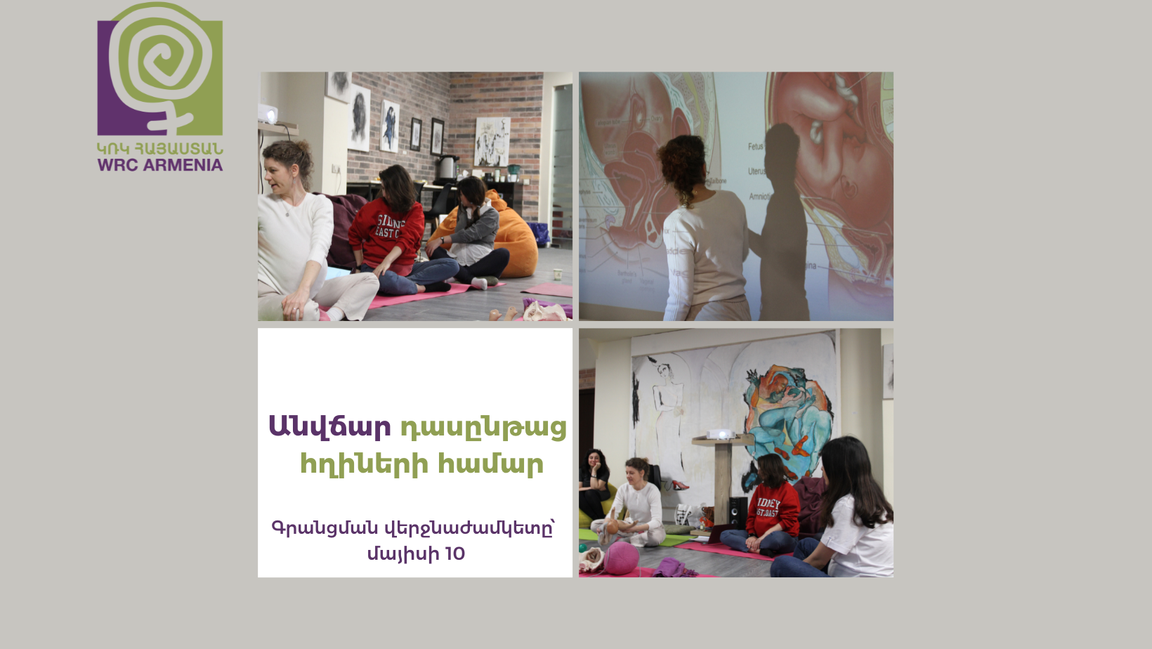 Դասընթացները կկազմակերպվեն յուրաքանչյուր երեքշաբթի և հինգշաբթի: Խնդրում ենք գրանցվեն միայն այն հղիները, ում հարմար են տվյալ օրերը: Կոնտակտային անձ՝Անուշ Պողոսյան, 094-56-56-26: Գրանցման վերջնաժամկետն է մայիսի 10-ը: