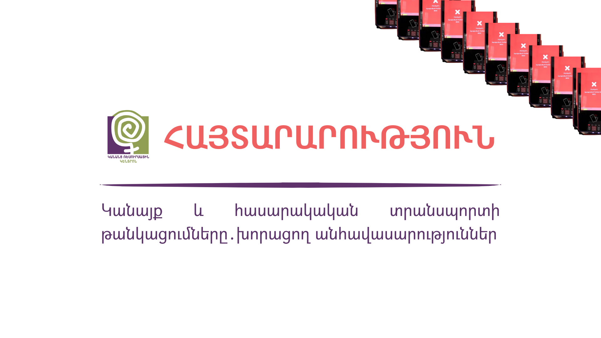 Կանանց ռեսուրսային կենտրոնը, որպես ֆեմինիստական կազմակերպություն, հայտնում է իր անհամաձայնությունը Երևանի քաղաքապետարանի՝ հանրային տրանսպորտի գնի բարձրացման որոշմանը: